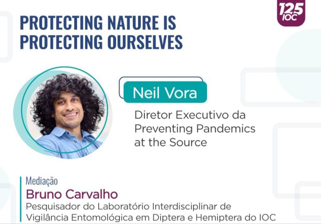 “O mundo vive uma era de sindemia”. Assim, o médico epidemiologista Neil Vora, diretor executivo da Preventing Pandemics at the Source – coalizão internacional criada para prevenir pandemias antes que elas comecem, sobretudo na origem das doenças que podem passar de animais para humanos – focou sua apresentação na palestra “Proteger a natureza é proteger a nós mesmos”, organizada pelo Centro de Estudos do Instituto Oswaldo Cruz (IOC), no dia 27 de fevereiro, convidado por Bruno Moreira de Carvalho, pesquisador em Saúde Pública no IOC.